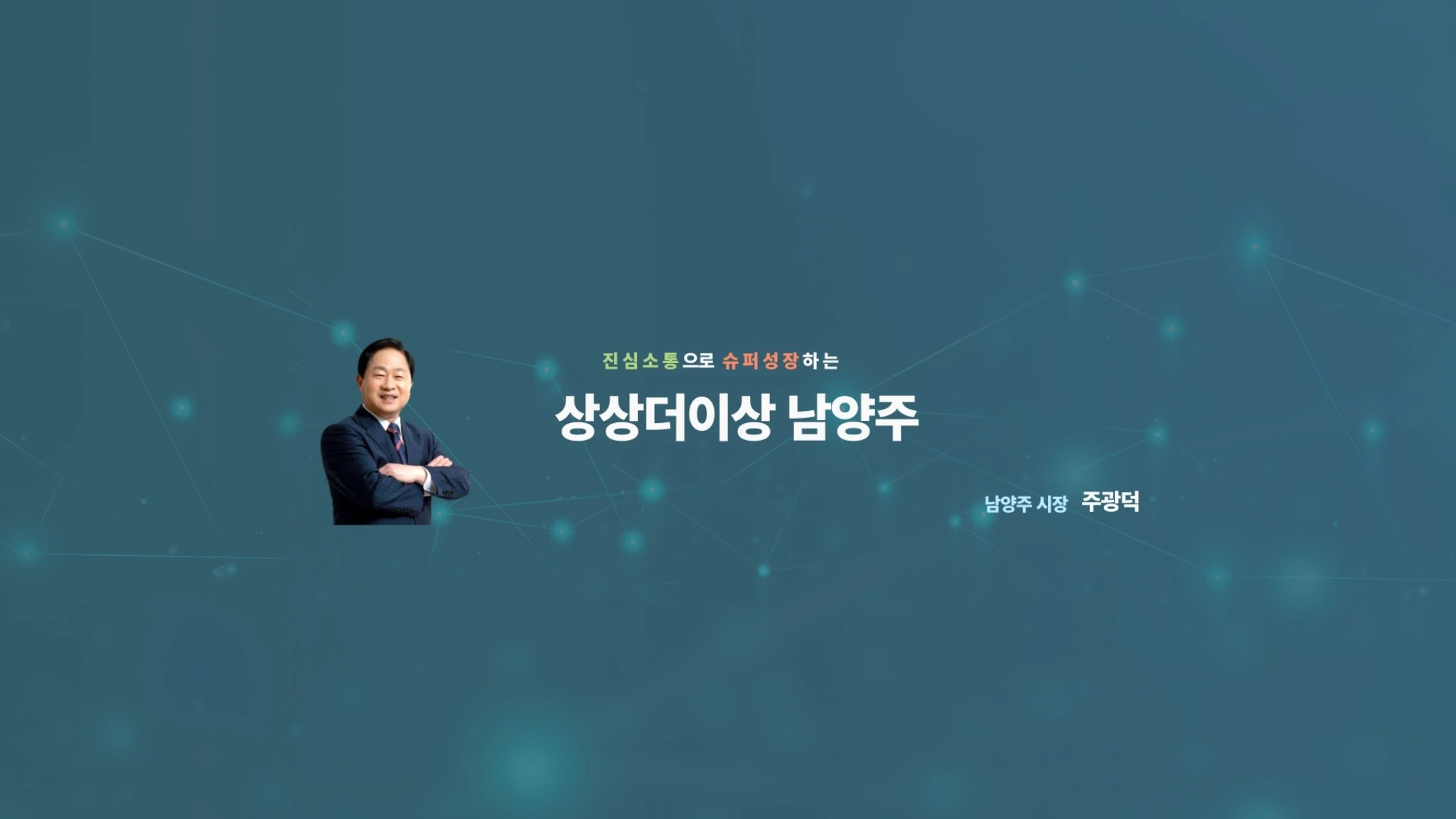 안녕하세요! 남양주시장 주광덕 입니다. 늘 성찰 속에 사람을 생각하고, 정의를 실천하도록 노력하겠습니다. 그리고. 여러분의 빛나는 꿈을 응원드립니다.