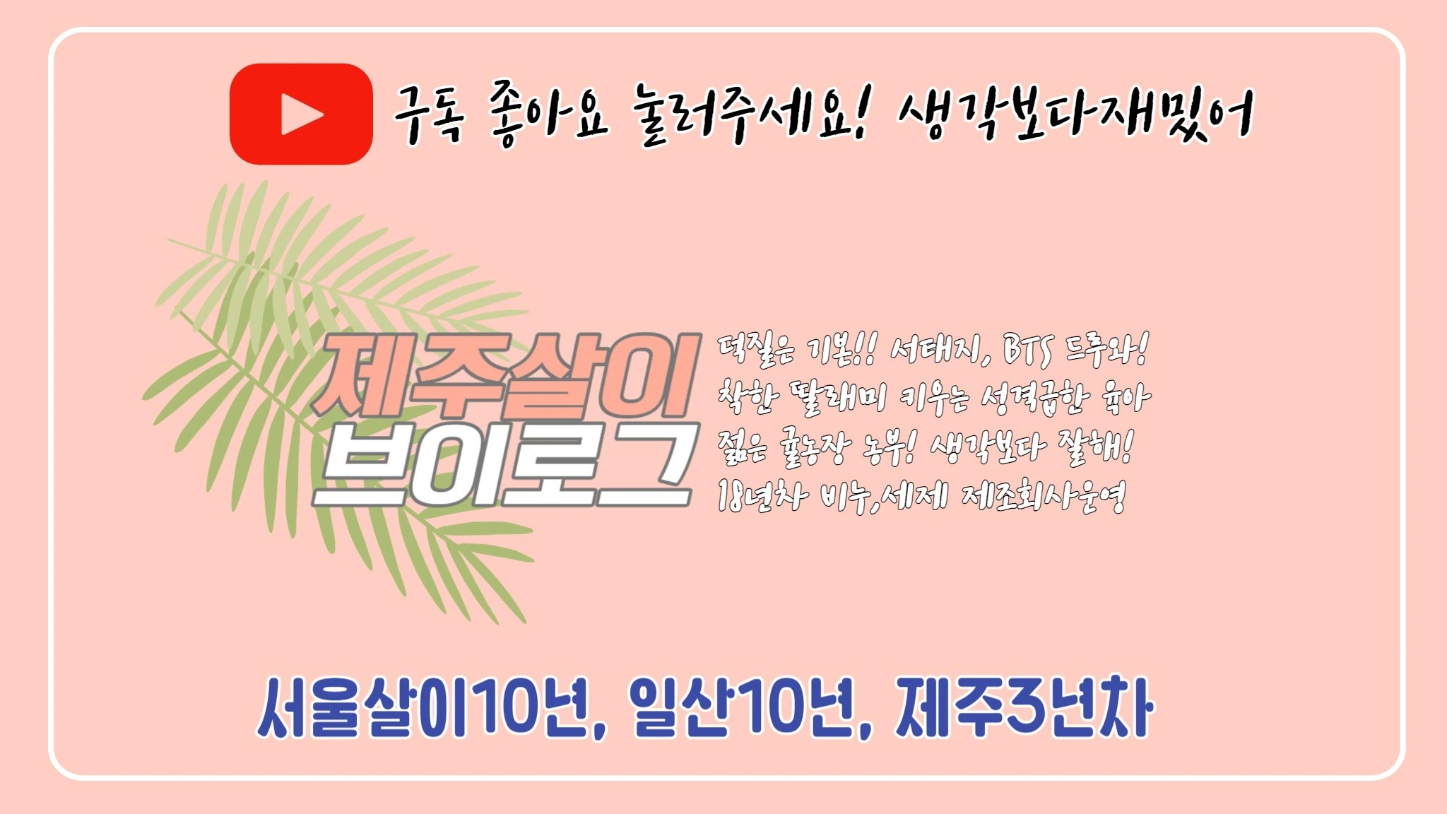 안녕하세요. 임작가입니다. 제주로 이주해서 제주 일상들을 조금씩 올리는 일상브이로그 유튜버입니다. 네이버블로그 20년차이구요. 네이버에 담지못하는 좋은 순간들을 더 올리고 싶어서 유튜브 만들었어요! 제가 갔던 곳이나, 먹었던거, 사용해보는거 다양하게 느리지만, 소소한 일상 많이 보여드릴게요! 아직 부족한게 많지만, 조금씩 배우면서 해나가겠습니다. 현재는 제주에서 귤농장을 운영하고 있어서 귤체험과, 귤판매를 하고 있구요. 주 업으로는 화장품, 비누, 세제를 제조 판매하는 작은 회사를 운영하고있습니다. 궁금하신 것은 이메일이나, 댓글, 인스타그램 DM을 주세요. + 비지니스 email : [email protected] + 인스타그램 : https://www.instagram.com/774.695/ + 임작가리뷰채널 : https://www.youtube.com/@withsome2