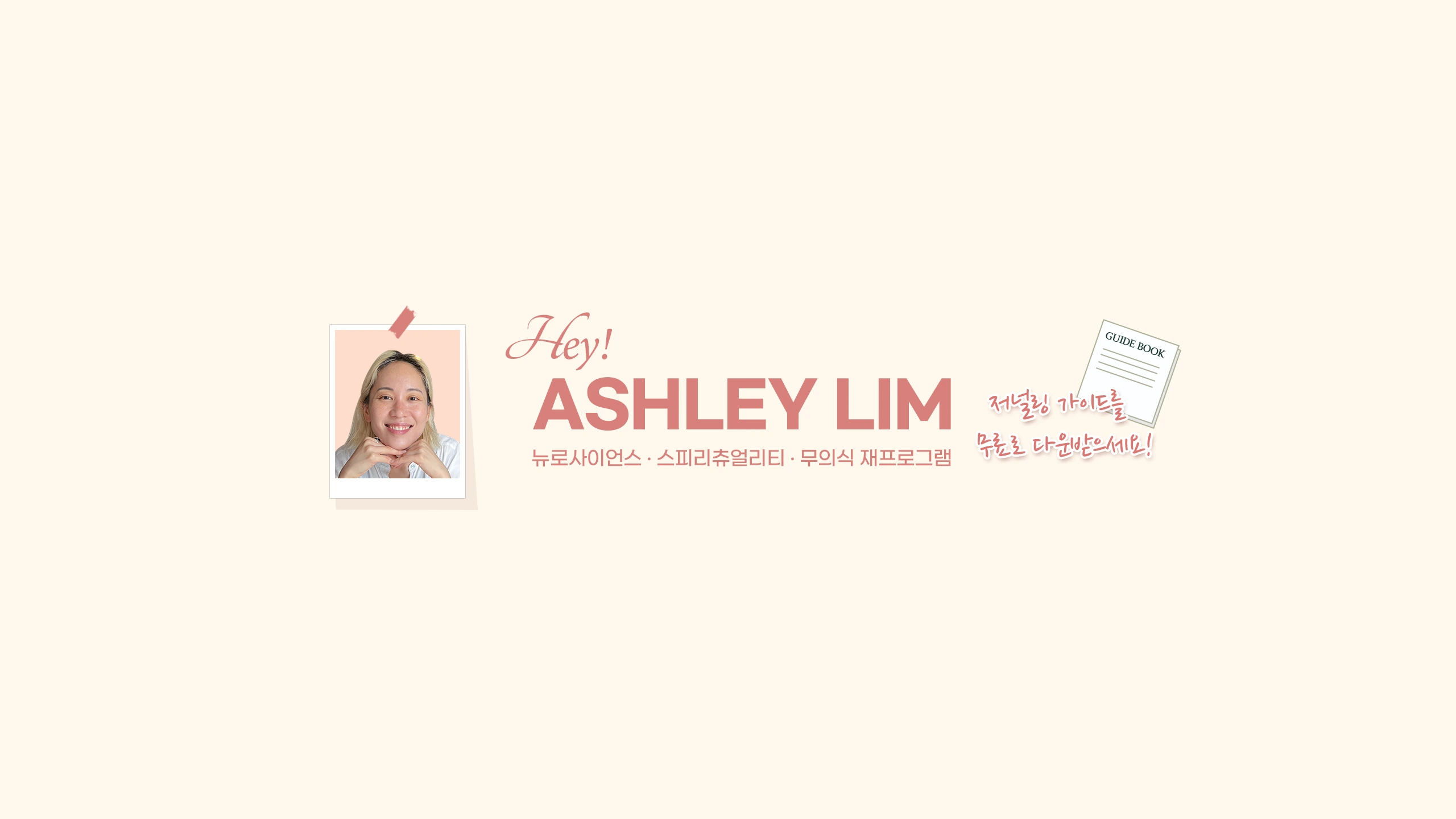 당신이 원하는 셀프-러브, 관계, 커리어를 현실로 만들 수 있도록 돕는 미션을 갖고 있어요. 우리나라 여성이 '베스트 버전의 나'로서 성장할 수 있도록 진정한 변화와 성공을 위한 뉴로사이언스, 무의식, 치유, 에너지에 기반한 자기개발 인사이트를 나눕니다. 안녕하세요! 애슐리에요. 이렇게 만나서 정말 반가워요. 저는 이민자로 20년간 호주에서 살았고, 기업가이자 NLP / 매니페스테이션 코치로 활동하고 있어요. Hey! Ashley Lim을 구독하고 제가 공유하는 팁을 여러분의 삶에 적용해 보세요. 수없이 많은 시행착오를 통해 배운 것들인 만큼 당신에게 정말 큰 도움이 될 거라고 믿어요. 제 1:1 또는 그룹 코칭 서비스와 '무료 저널링 가이드북'은 링크를 통해서 확인할 수 있어요. Love, 애슐리