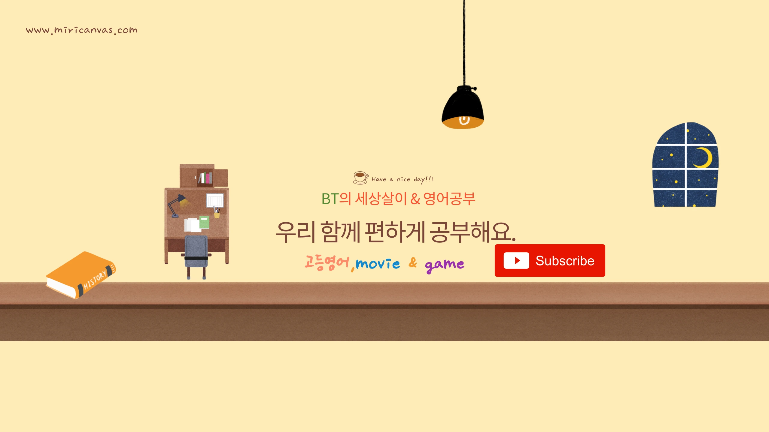 공부는 어렵습니다. 누구나 쉽고 편한 방법을 찾지만 그런 방법은 없습니다. 수많은 유혹과 사기꾼들밖에는 없습니다. 단기간에 자기방법대로 하면 무조건 공부잘 하게 해주겠다는 말은 더 이상 믿지 마시기 바랍니다. 뭐..아직 그런 사기가 통하는 세상이라 여전히 걱정이긴 하지만요^^ 제가 올리는 영상들이 영어를 공부하는 학생들 뿐만 아니라 늦게라도 영어공부가 필요하신 분들에게 조금이나마 도움이 될 수 있길 바랍니다. 꾸준함이 공부의 기본이라 믿기에 지금까지 그래왔듯이 앞으로도 꾸준히 영어공부와 게임관련 영상들을 올리도록 하겠습니다. 그외 영상도 있으니 이쁘게 봐주시기 바랍니다~