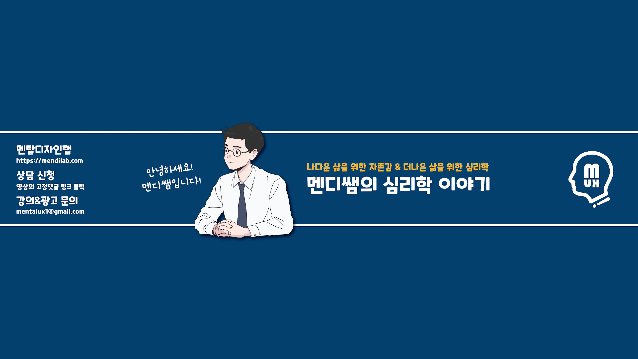 안녕하세요 멘디쌤의 심리학 이야기의 멘디쌤입니다. 😄 멘디쌤의 심리학 이야기 채널에서는 나다운 삶을 위한 자존감 지식, 더나은 삶을 위한 심리학 지식을 다룹니다. 자존감 높이러 가기 : https://mendilab.com/ 인스타그램 : https://www.instagram.com/mendi_ssam/ 인스타툰계정: https://www.instagram.com/mendi_note/ 스레드: https://www.threads.net/@mendi_ssam 강의 및 프로필 소개 : https://blog.naver.com/mendi_ssam/222960946088 광고 및 문의 : [email protected] (*책 소개 및 저자 소개는 유료 광고로만 진행합니다.) ◆ 현재 멘탈경험디자인 대표 서울대학교 심리학 전공 2017년 세종도서 교양부문 선정 책 '출근하자마자 퇴근하고 싶다' 저자 2019년 '아까 화 냈어야 했는데' 저자 '대만 수출' 전자책 '말을 편하고