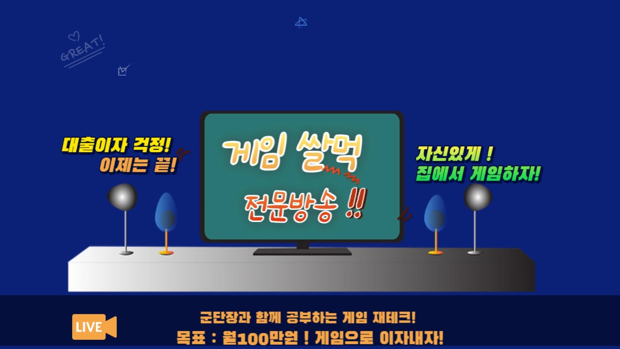 [게임방송 + 쌀먹방송] -게임으로 용돈벌기 프로젝트! 게임부업 쌀먹으로 즐겁게 대출이자 내봅시다! 광고문의 1. 오픈채팅 https://open.kakao.com/o/sllr1Xpf 2. 이메일 [email protected] [쌀먹군단장]오픈카톡방 입장 : 커뮤니티 참고 dab361e9-888b-4f08-b063-24c426be3cb5