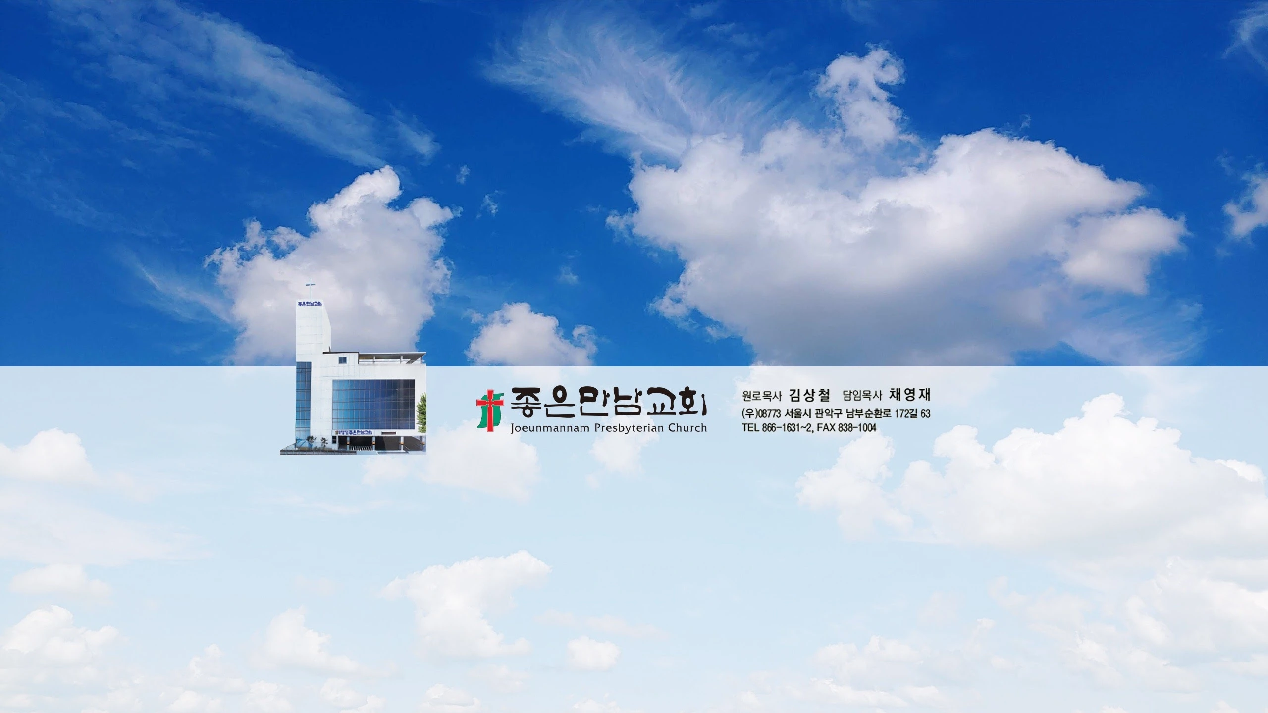 서울특별시 관악구에 위치한 좋은만남교회입니다.(담임목사 채영재) ********** 교회안내 ********** - 주소 : 서울특별시 관악구 남부순환로 172길 63 - 전화 : 02)866-1631~2 ********** 예배안내 ********** - 주일 1부예배 7:30 - 주일 2부예배 9:30 - 주일 3부, 찬양의 향기로 드리는 예배 11:30 - 주일오후찬양예배 14:00 - 수요성령기도회 19:30 - 새벽기도회 5:00 (월-금) ********** 헌금안내 ********** [온라인헌금] - 국민은행 078537 - 04 - 009844 - 통장 표기 예) - 김믿음240901주 (주일헌금의 경우) - 김소망240901십 (십일조헌금의 경우) - 김사랑240901감 (감사헌금의 경우)