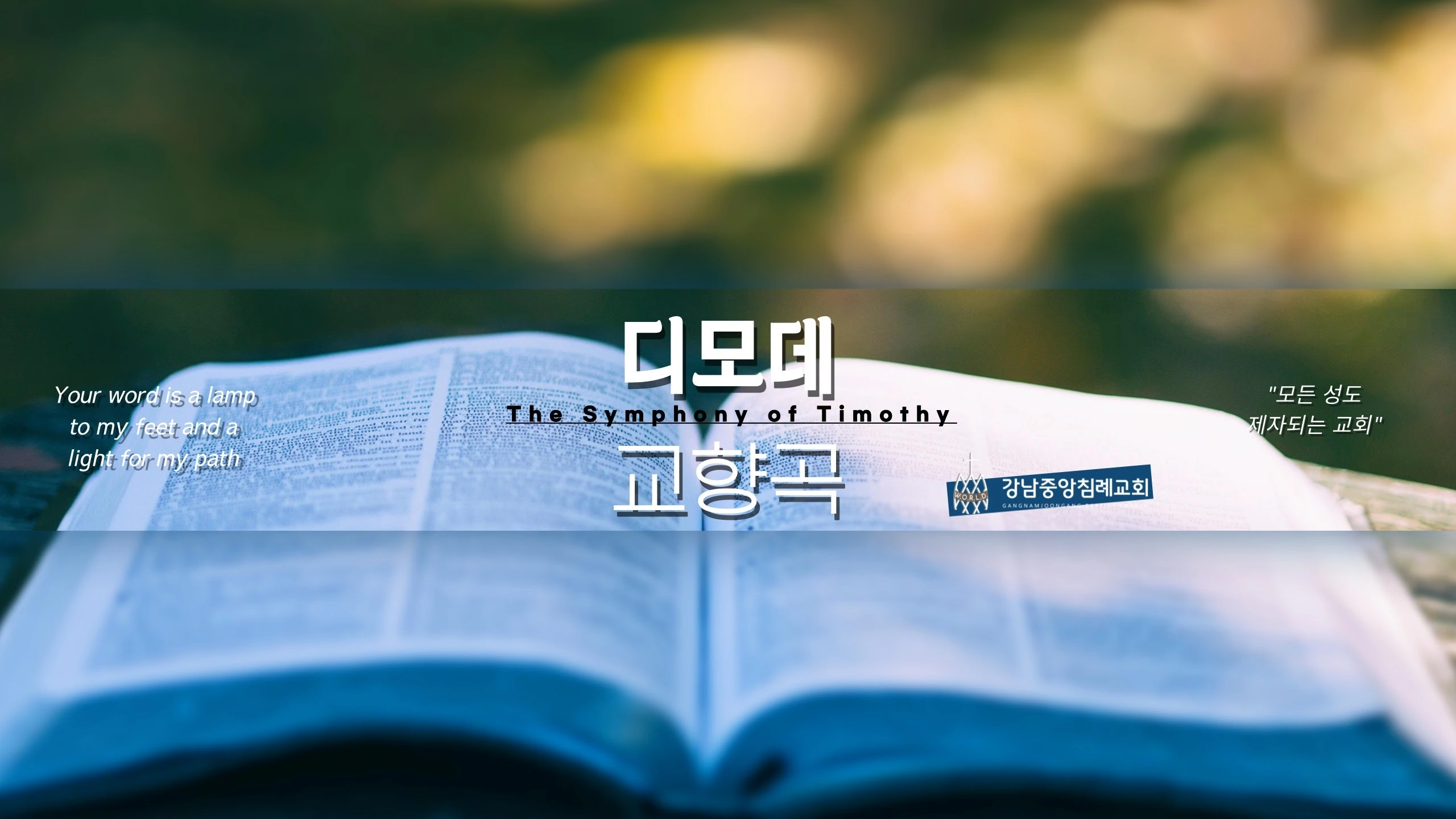 디모데교향곡은 강남중앙침례교회 부목사 설교 채널입니다. * 수요예배 * 금요성령집회 * 주일예배 * 새벽예배 - 실시간 새벽예배 안내 화~금 6:25부터 새벽예배가 실시간으로 스트리밍 됩니다. 구독과 알람 설정 부탁 드립니다. *강남중앙침례교회 공식 유튜브 https://www.youtube.com/c/KjbcOrKr *강남중앙침례교회 찬양 공식 유튜브 https://www.youtube.com/channel/UCwLuanV8WKc5NmmIeeRGgfQ #디모데교향곡 #강남중앙침례교회부목사 #강남중앙침례교회 새벽 #강중침새벽기도