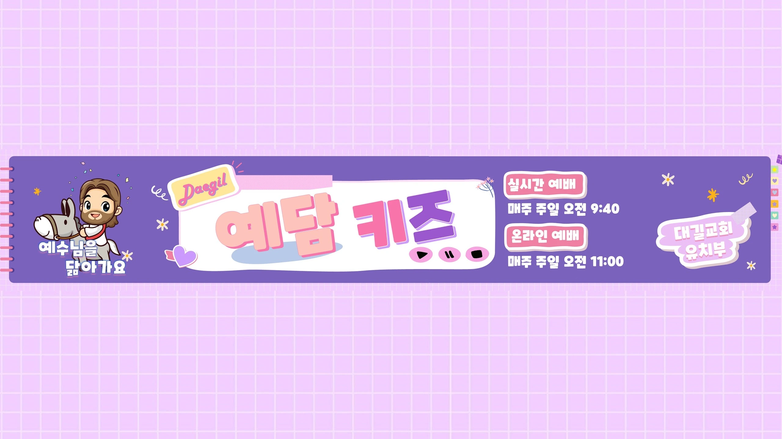 "한 영혼을 예수님께로!" 예:수님을 닮아가길 원하는 어린이! 담:대하게 예수님을 전하는 어린이! 키:와 지혜와 사랑이 자라는 어린이! 즈:을겁게(즐겁게) 예수님을 따라가는 어린이! 모두 모이세요*^-^* 🌸믿음의 부모! 믿음의 자녀! 믿음의 세대를 일으키소서! 🌸김지현 전도사 소개 -총신대학교 유아교육과, 총신대학교상담대학원 기독교상담 전공 -현재 [내수동교회] 유아부에서 교육전도사로 사역하고 있습니다 :) 🌸예담키즈 카카오톡 채널 https://pf.kakao.com/_zxbEcK 💌음원 저작권으로 인하여 영상삭제를 요구하실 경우 댓글,카카오톡채널,메일로 연락주세요. 💌이 작은 온라인 공간을 통해서도 하나님만 홀로 영광받으시기를 원합니다. 💌예담키즈 채널은 수익창출을 하지 않습니다. 혹시 광고가 나온다면, 음원을 사용해서입니다. -예수님을 닮아가길 원하는 지극히 작은 자 김지현 올림-