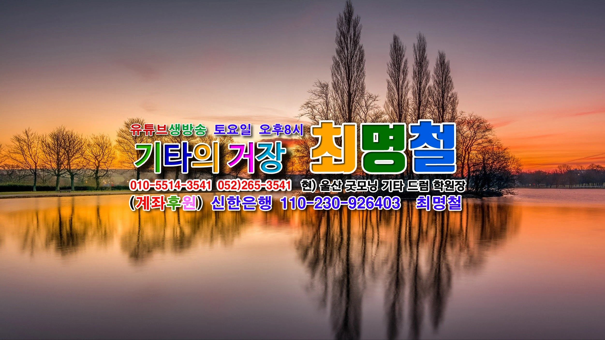 동영상을 시청하시고 기타에 관심이 있으신 분들은 굿모닝 밴드에 가입하시면 기타를 배우실 수 있습니다 ~~^^~[ 굿모닝 유튜브 밴드 가입 시 회원 혜택 ] 1. 회원 개별 실력에 따른 초급,중급,고급반 운영 2 . 평소에 배우고 싶으신 곡 신청 시 : 수준에 맞는 편곡으로 기타 연주 악보 제공 ➡️ 출력하여 연습 가능 3 . 신청곡의 강의 동영상을 밴드에 제공 : 회원이 원하는 시간에 영상 수업 가능 ☎️ 상담 및 문의 : 울산 굿모닝 기타드럼학원 ( 052 -265 - 354 ) 원장 최명철 ( 010-5514-3541 )
