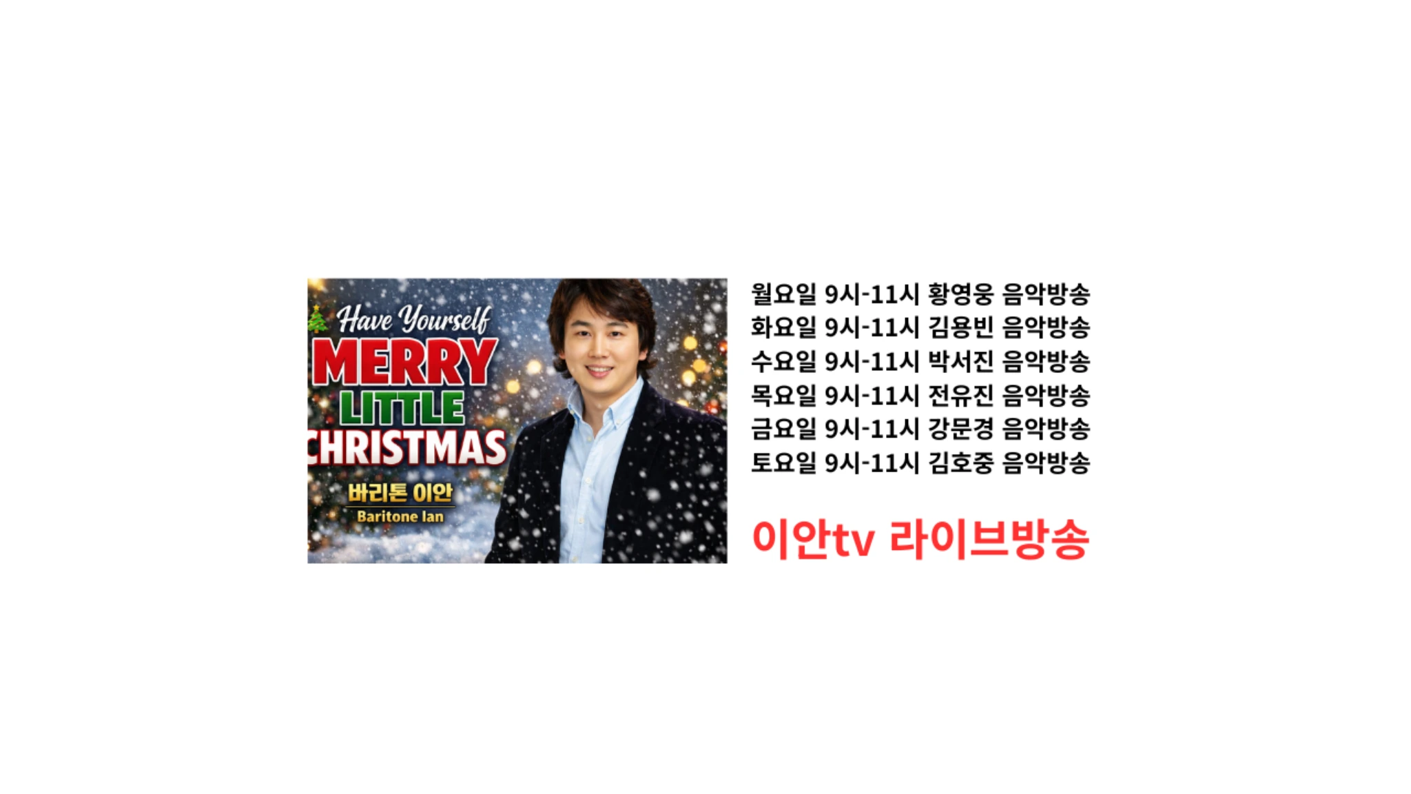 이안(성악가,지휘자,연출가) 러시아 우파국립예술대학 음악원 합창지휘과 최고연주자과정(연주학박사)수료 러시아 우파국립예술대학 음악원 성악과 최고연주자과정(연주학박사)졸업 한국예술종합학교 예술전문사과정 오페라과 졸업(전공 오페라연출) 모스크바 Institute of Russian Theater 졸업 (Diplom) 로마 A I D M 아카데미아 졸업 전 러시아 성악콩쿠르 1위 제 5 회 대한민국 오페라대상 월전문화재단상 수상 2020 제28회 대한민국문화연예대상 '뮤지컬교육자상'수상 2021 서울시의회의장상수상(국제교류부문) 2023대한민국 교육산업대상 클래식대중화부문 수상 2024 SSO국제콩쿨 지휘부문 대상,국회의원상 수상 2024 뉴질랜드 세계합창대회 서울푸르나메합창단 은상수상(지휘 이안) 2024 노원구청장 표창장 수상 2025 국제장애인문화교류협회 표창장수상 작품출연 뮤지컬 오페라의유령 (팬텀역,라울역커버 및 앙상블) 뮤지컬 정조대왕 (정조역) 뮤지컬 프린세스낙랑(호동왕자역) 뮤지컬 지킬앤하이드(글로솝장군역) 오페라 마술피리 파파게노역 오페라 라보엠 쇼나르역 오페레타 메리위도우 다닐로역 외 20여회 주역출연 독창회14회 tvN '너의목소리를보여줘' 보컬코치 팝페라그룹 라스페란자 프로듀서 KBS누가누가잘하나 출연 KBS찾아가는콘서트출연 MBC청주방송라디오출연 TBC인천교통방송 김광한프로출연 SBS스타킹 라스페란자 출연지도 장로회신학대학교,평택대학교,극동대학교,가톨릭관동대학교,명지대학교콘서바토리 겸임교수 및 강사역임 독일 뮤지컬 대학 Stage School, 독일 함부르크 쟁어아카데미 초빙교수역임 동국대학교 연극학부 뮤지컬가창실기 겸임교수역임 서울외국어대학원대학교 겸임교수역임 현,칼빈대학교 평생교육원 주임교수,서울푸르나메합창단지휘자,카메라타예술단 음악감독 ,준씨어터대표