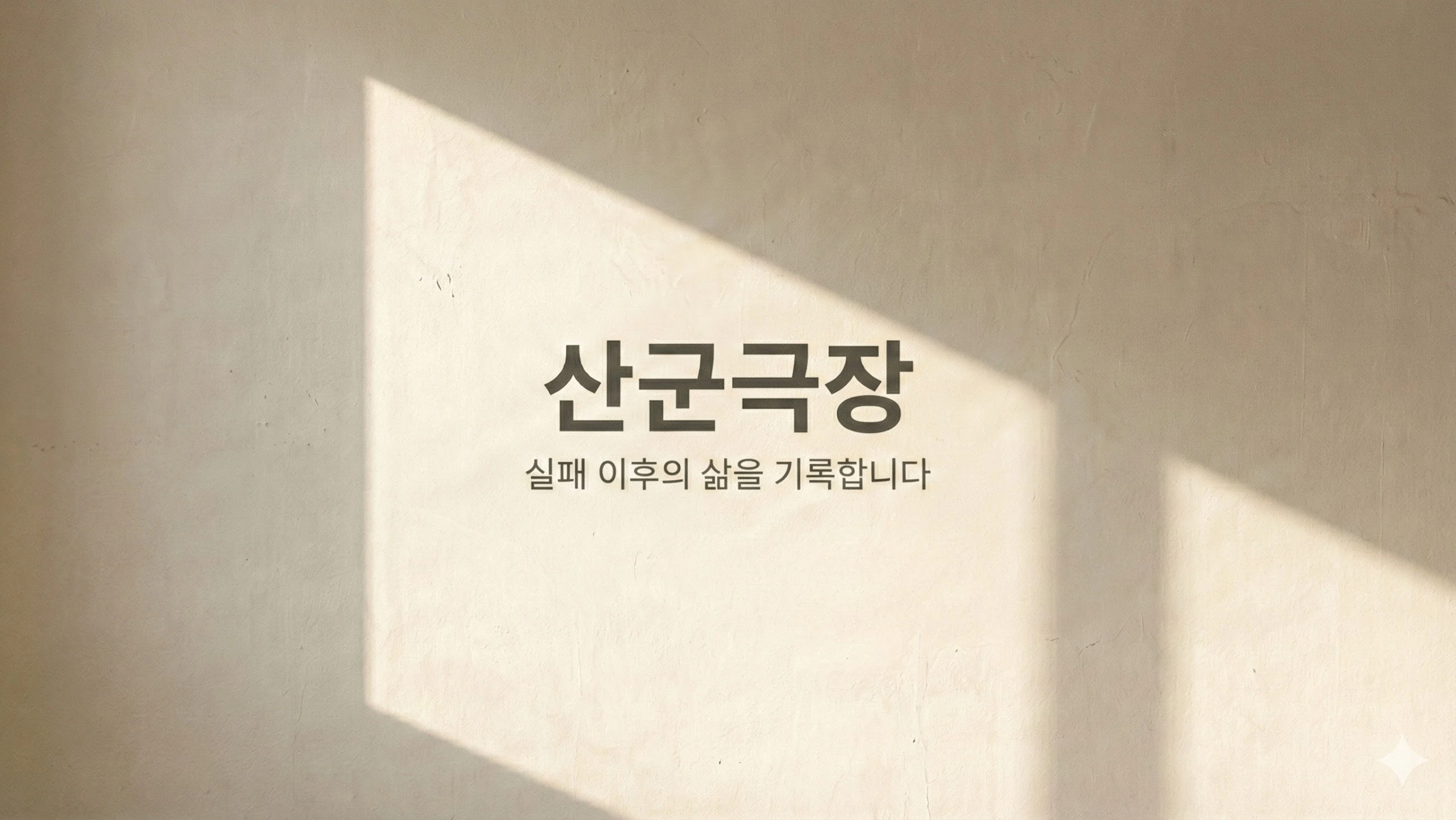 망한 인생에서 다시 시작합니다, 산군극장. 41살, 실패와 일상의 기록. 풀스토리는 영상으로 남깁니다.