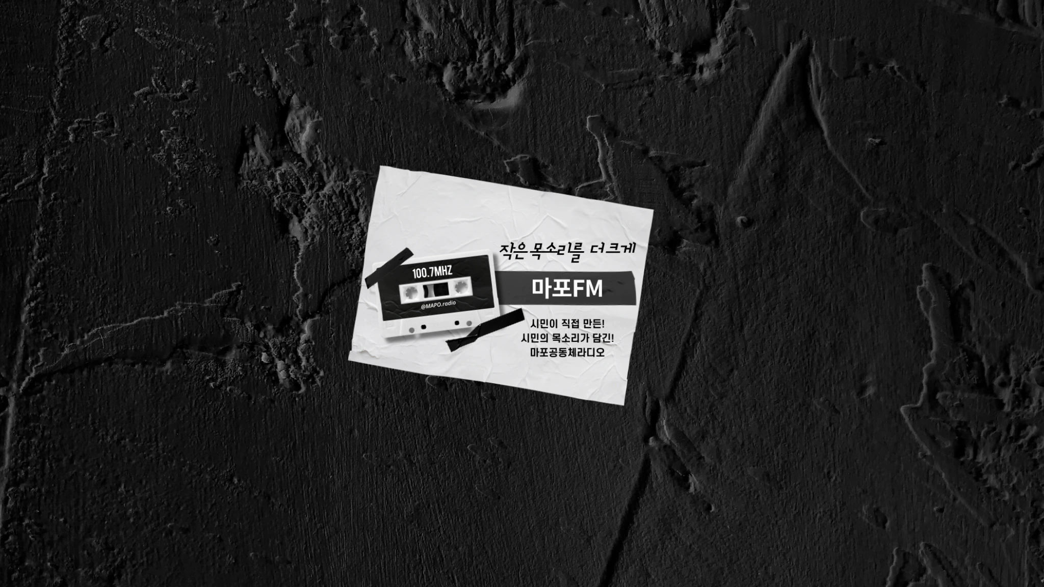 작은 목소리를 더 크게 ! 시민이 직접 만들고 시민의 목소리가 담긴 공동체라디오 마포FM입니다. '평범한 우리들의 조금은 특별한 이야기'에 귀 기울여 보실래요? 마포구와 서대문구 일부지역에 100.7Mhz 주파수로 송출됩니다. 안드로이드 앱스토어에서 '마포FM' 혹은 '씨알'을 검색하시면 어플로도 청취하실 수 있습니다.