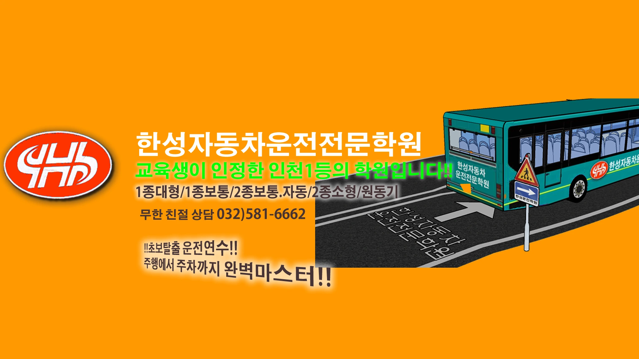 인천의 수강생이 인정한 인천의 한성운자동차운전전문학원입니다. 1종대형/1.2종보통(자동)/2종소형/원동기면허 등 빠르고 쉽게 취득 할 수 있습니다. 초보탈출을 위한 도로시내연수 특별반도 운영합니다. 친절상담: 032)581-2222 홍보실장:010-5311-1516