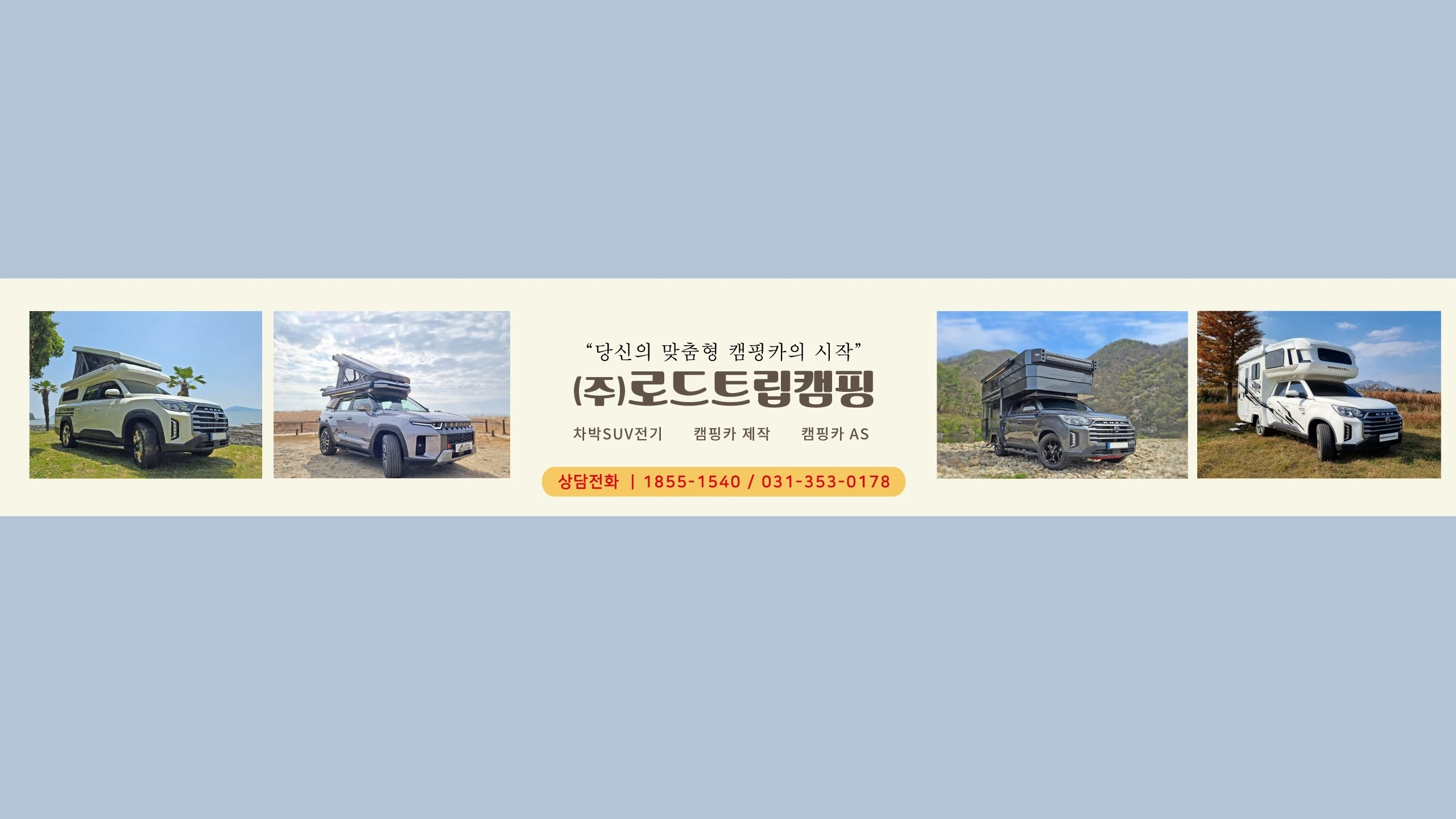 ■ 일상을 여행으로 물들이는 시간, 로드트립캠핑 (SINCE 2010~) 안녕하세요 캠핑카 제작업체 로드트립캠핑 공식 채널입니다. ■ SINCE 2010 여행이 주는 즐거움이 일상을 얼마나 풍요롭게 만드는지 알기에 거창하지 않아도 집 앞 도로가 곧바로 여행이 되는 그 순간을 위해, 2010년부터 캠핑카 제작 한 가지에 집중해 왔습니다. ■ 많은 차를 제작하였습니다. 간단한 SUV 차박캠핑부터 완성도 높은 모터홈 캠핑카까지 수많은 고객님들의 차를 제작 및 기획·설계·시공하였기 때문에 제작에 대한 수많은 데이터를 갖고 있습니다. 따라서 나에게 맞는 상담 및 제작이 가능합니다. ■ 로드트립캠핑은, 수많은 데이터를 근거로 캠핑카 제작 비용과 기간은 정직하게, 자재와 공정은 근거로 명확히 설명 드리겠습니다. 로드트립캠핑과 함께, 일상과 여행이 자연스럽게 이어지는 삶을 시작하세요. ■ 블로그(시공 사례) : https://blog.naver.com/roadtripcamping ■ 홈페이지(제원·가격) : http://www.roadtripcamping.kr ■ 주식회사 로드트립캠핑 본사: 경기도 화성시 팔탄면 밤뒤길 39번길 30-25 문의전화: 1855-1540 / 031-353-0178 / 010-8081-1538